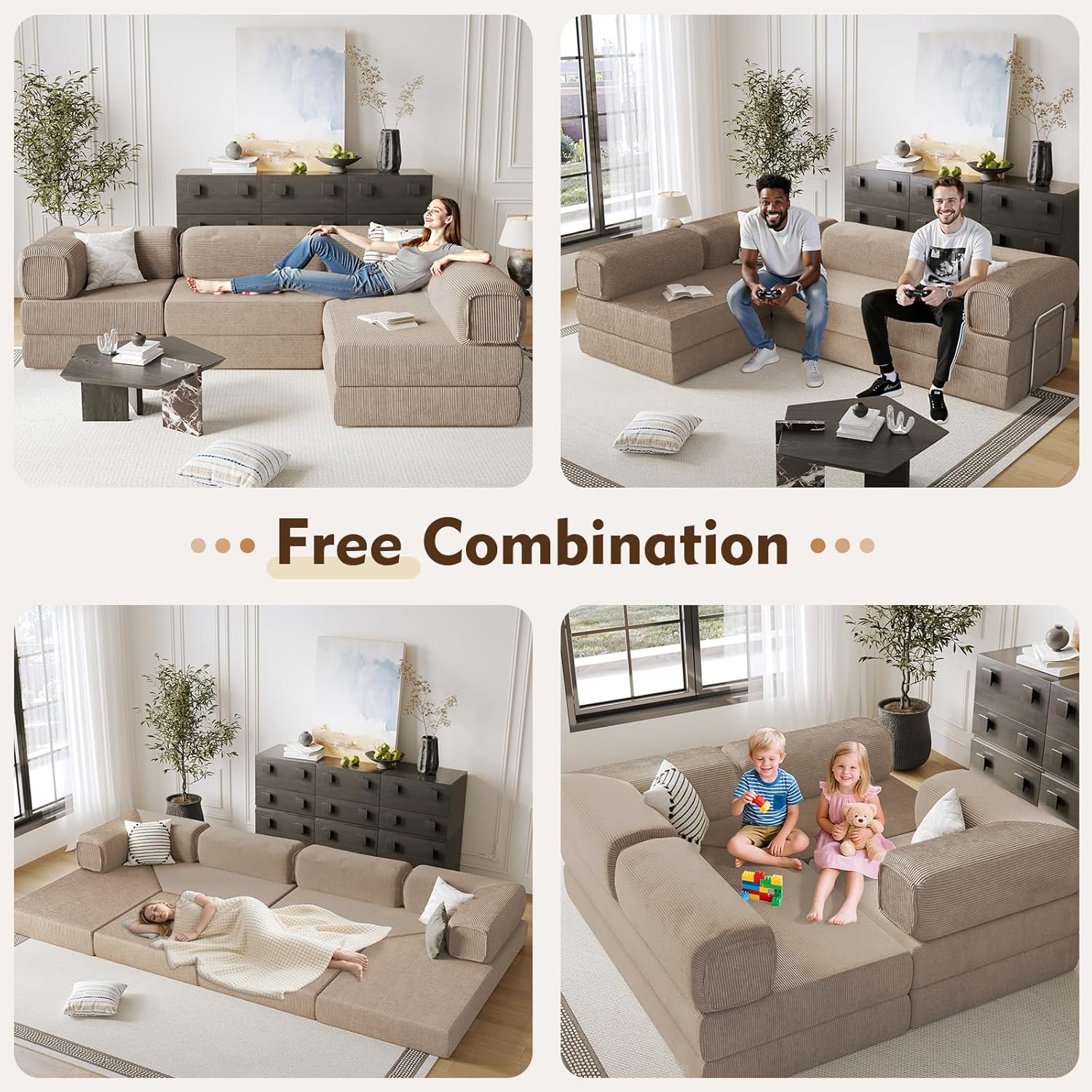 [Free Combination] Each individual seat and back pillow of this modular sectional sofa can be moved and rearranged to suit your needs. Set it up as a standard L shaped couch, a comfortable sofa bed, or create your own unique layout. Unleash your creativity to design the suitable arrangement for your space