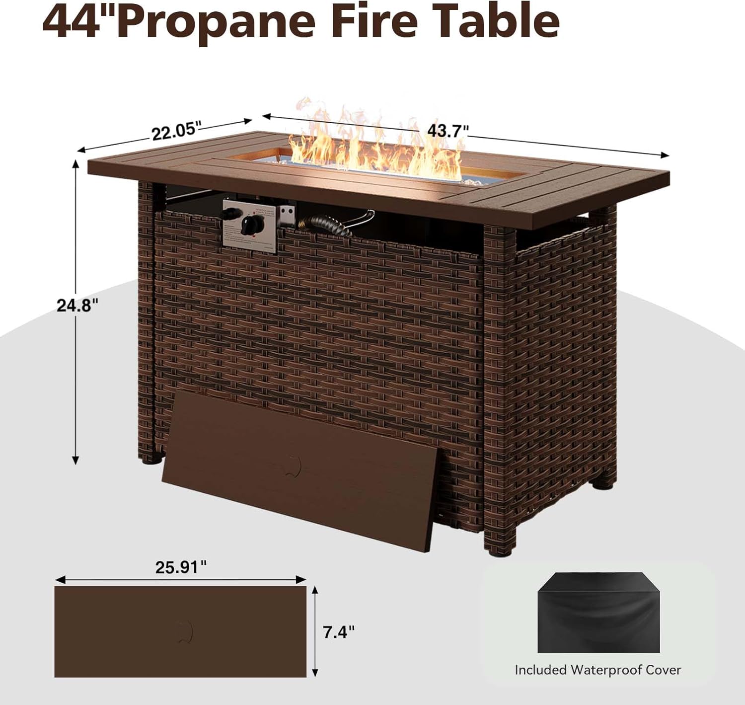 8 reviews for Aoxun 44″ Propane Fire Pit with Storage 50,000 BTU Outdoor Wicker Fire Table CSA Certified Patio Rectangular Gas Fire Pit Table with Firepit Lid and Waterproof Cover