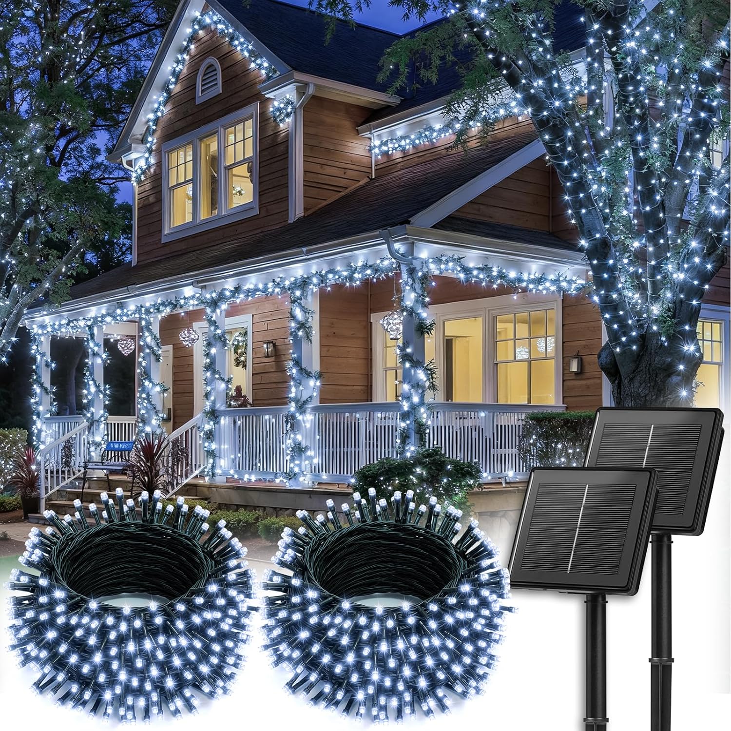 8 reviews for Brightown 2 Pack Solar Christmas String Lights Outdoor, Total 144Ft 400 LED Twinkle Fairy Lights Waterproof with 8 Modes Auto On/Off for Patio Tree Garden Party Home Wedding Decorations (Cool White)