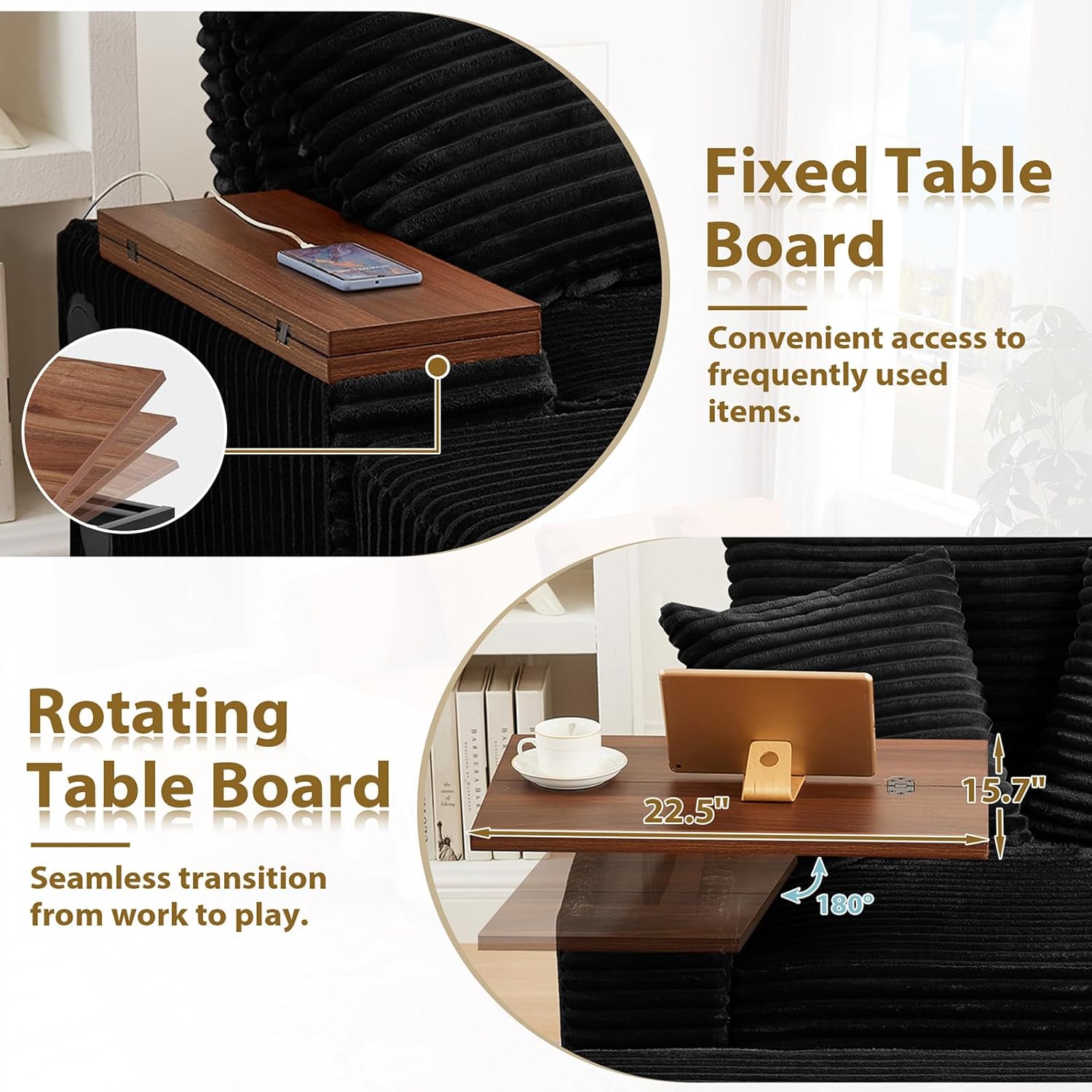 Rotating Table Board & Ergonomic Design: Features an upgraded, multi-directional flip-up table that swivels for optimal placement. Paired with the conveniently positioned cup holder, your comfort and convenience are always within arm’s reach