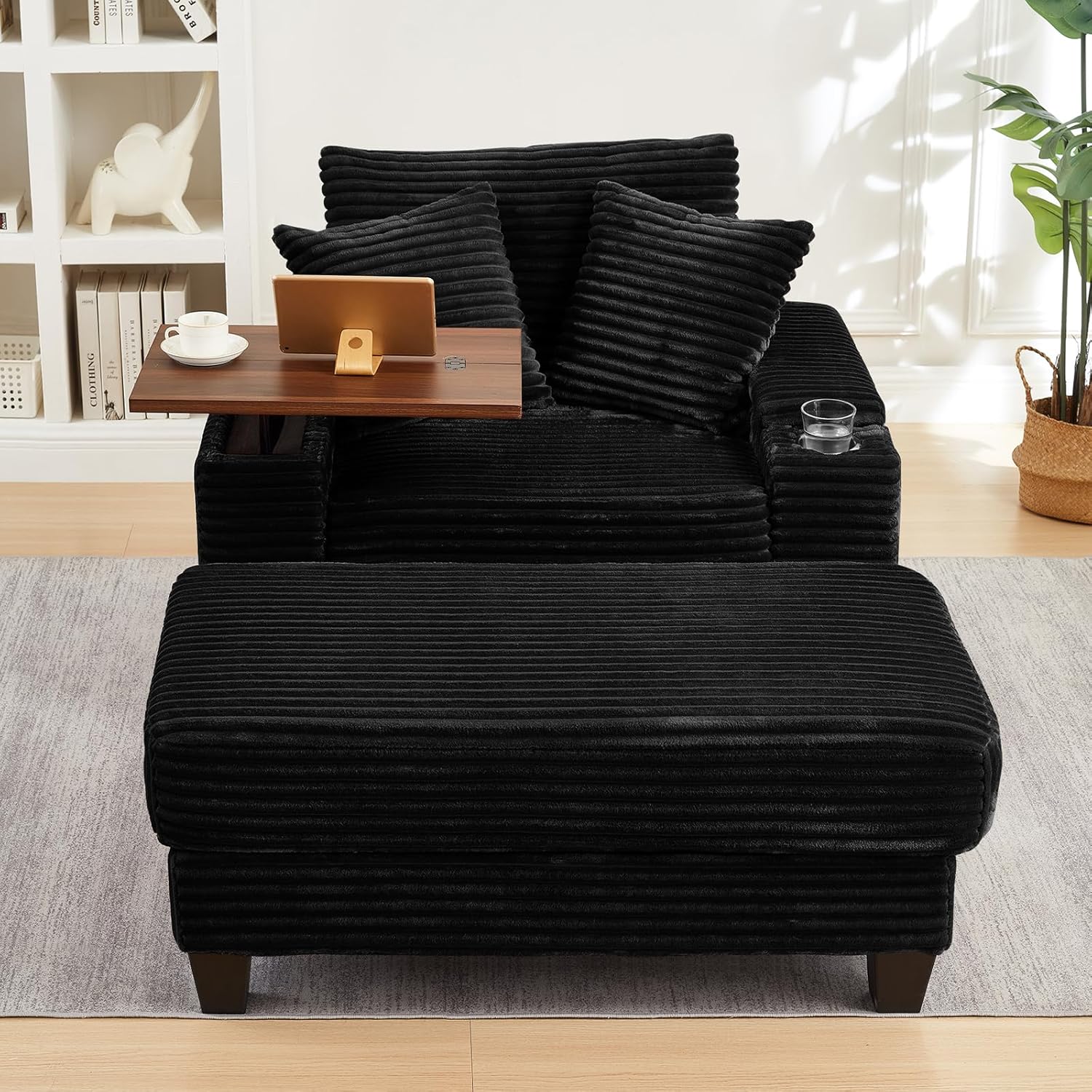 Be the first to review “cinkehome Oversized Accent Chair with Ottoman & Table Board & Bluetooth Speaker, Comfy Upholstered Armchair, Oversize Lounge Chair for Living Room, Reading Nook, Cup Holder (Black Corduroy)”