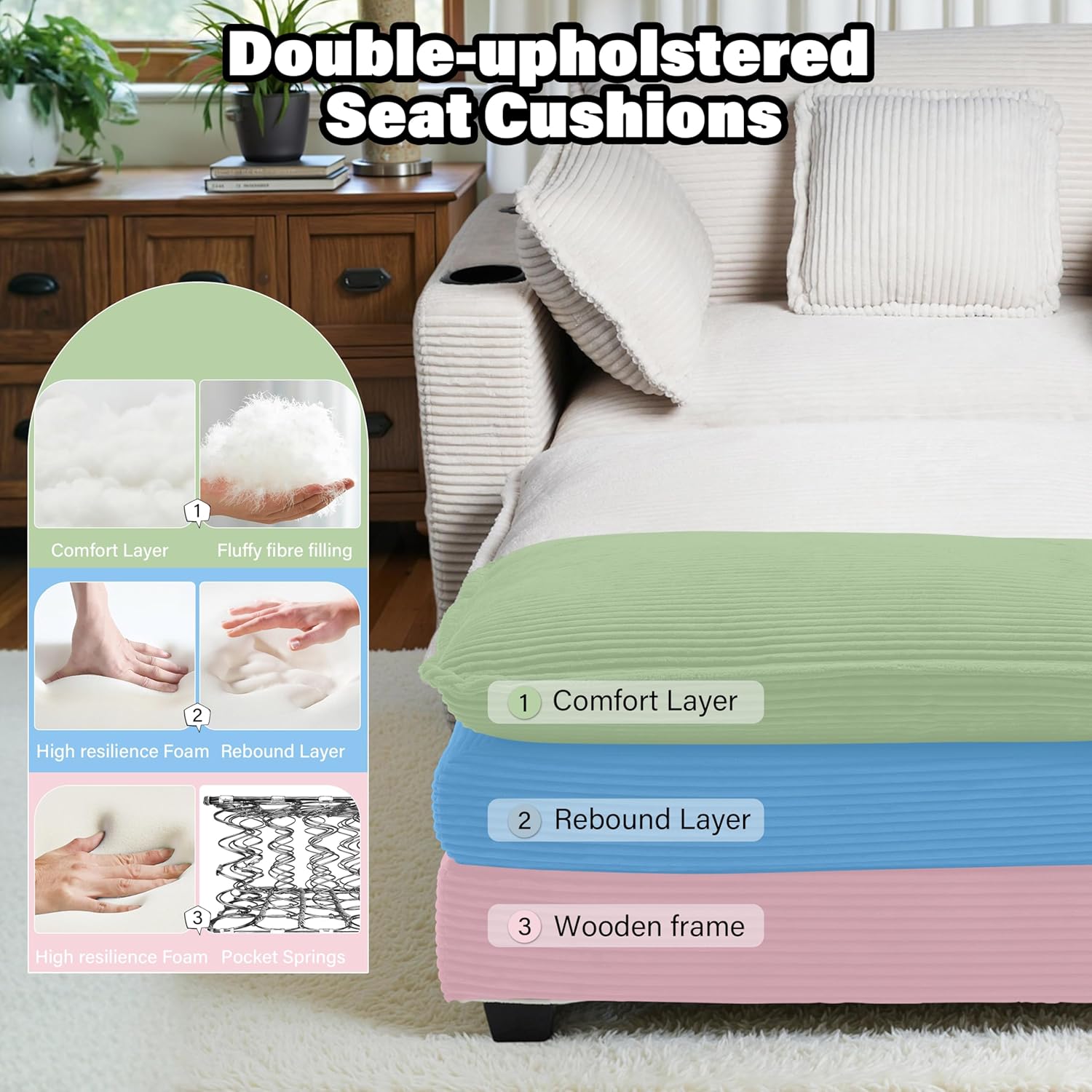 【Exceptional Comfort for Relaxation Seekers】- Crafted from corduroy fabric, Its breathability keeps you cool during extended lounges, and the silky – soft texture is gentle on your skin. The high – resilience foam ensures the big comfy chair and a half maintains its shape. Whether you’re a busy professional unwinding after work or a stay – at – home parent enjoying a moment of peace, this wide chair set is designed to be your personal comfort zone.