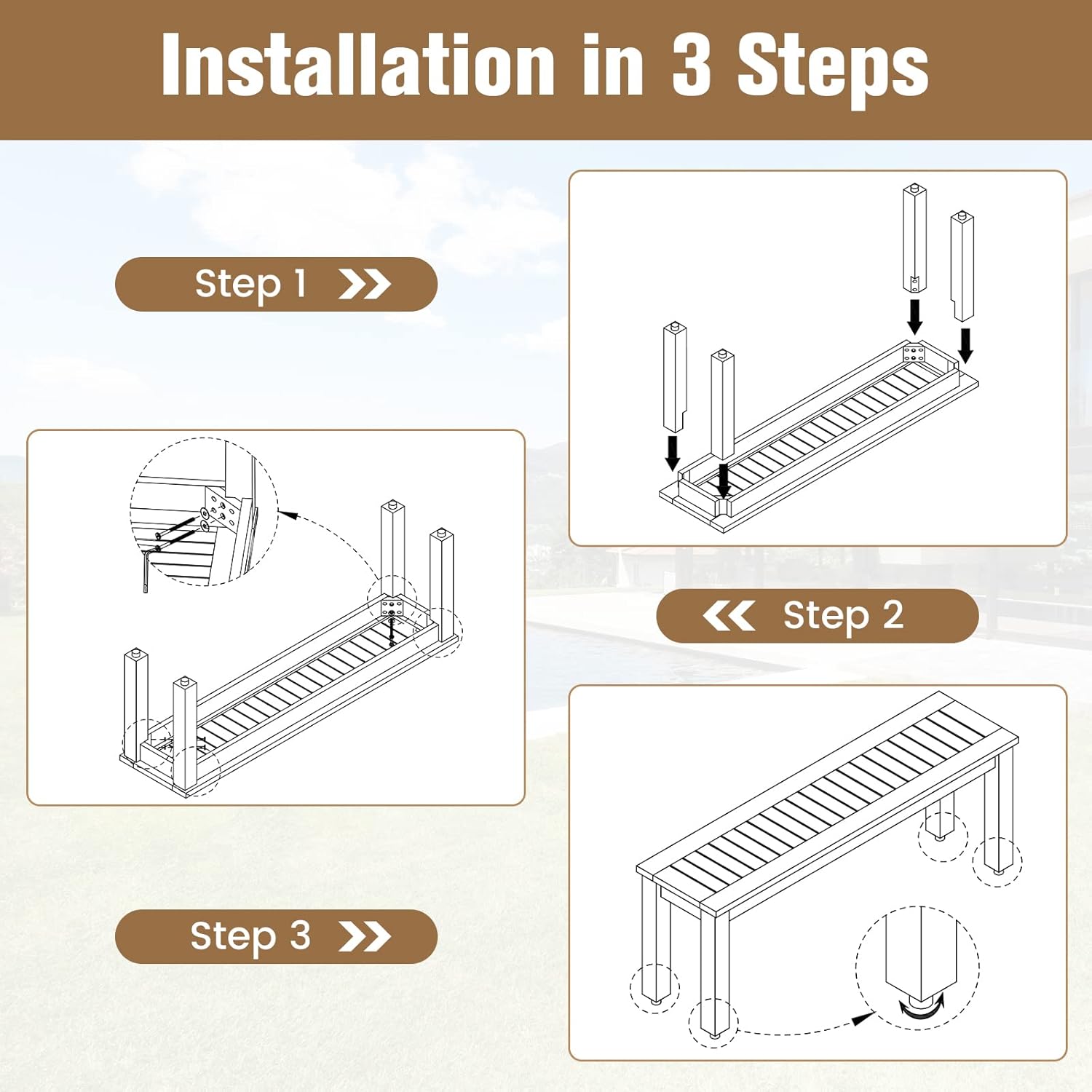[Quick Assembly] Comprehensive assembly instructions mean you can quickly put together your garden bench and spend more time enjoying it. The smooth surfaces make cleaning and maintenance a breeze, ensuring that your bench stays looking great in your space for years to come.