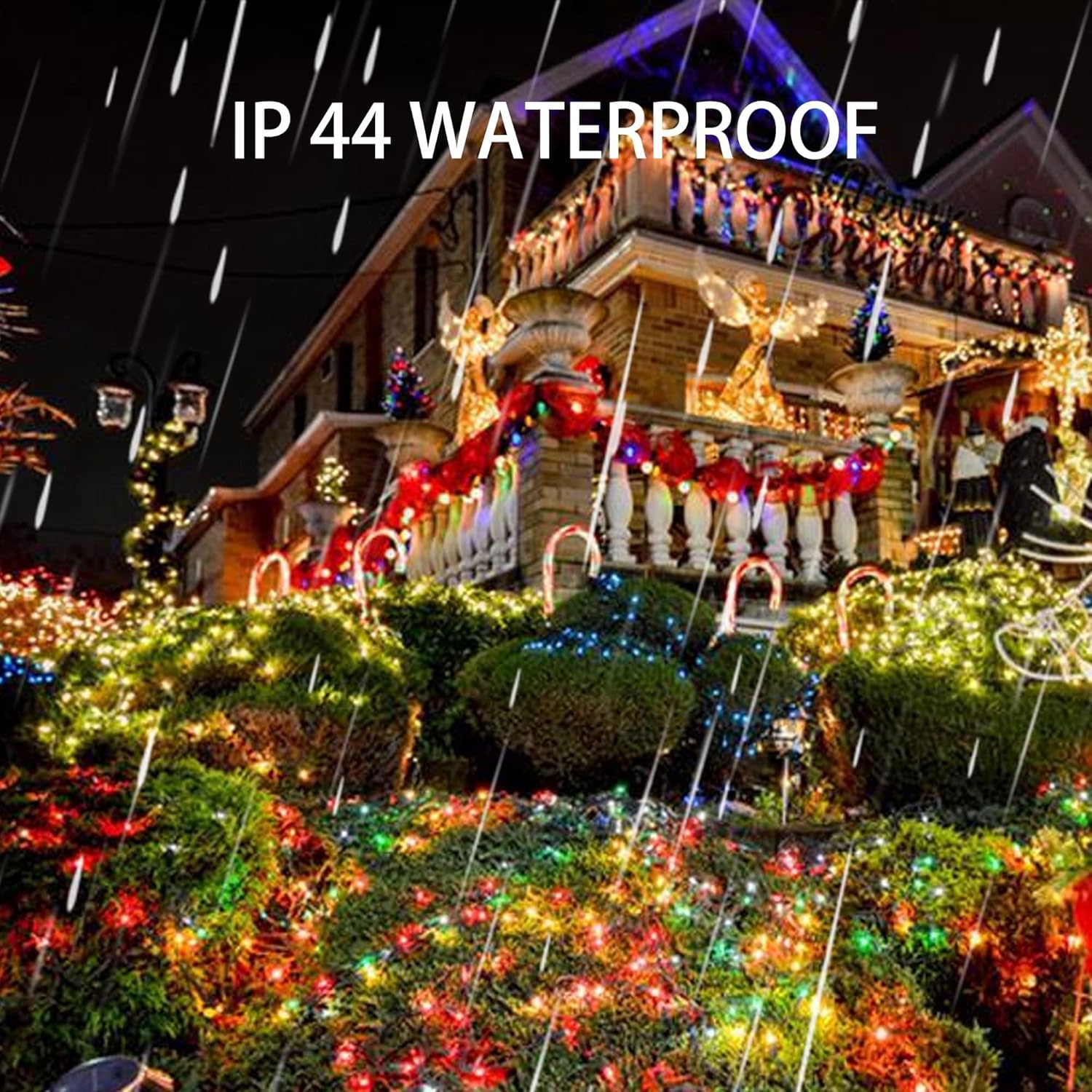 IP 44 WATERPROOF LEVEL : Both the solar string lights and solar panel are IP44 Water proof, the silver wire is anti-rust suitable for outdoor decorating. It can withstand all kind of weather, no worries about rain, snow, frost, or sleet.