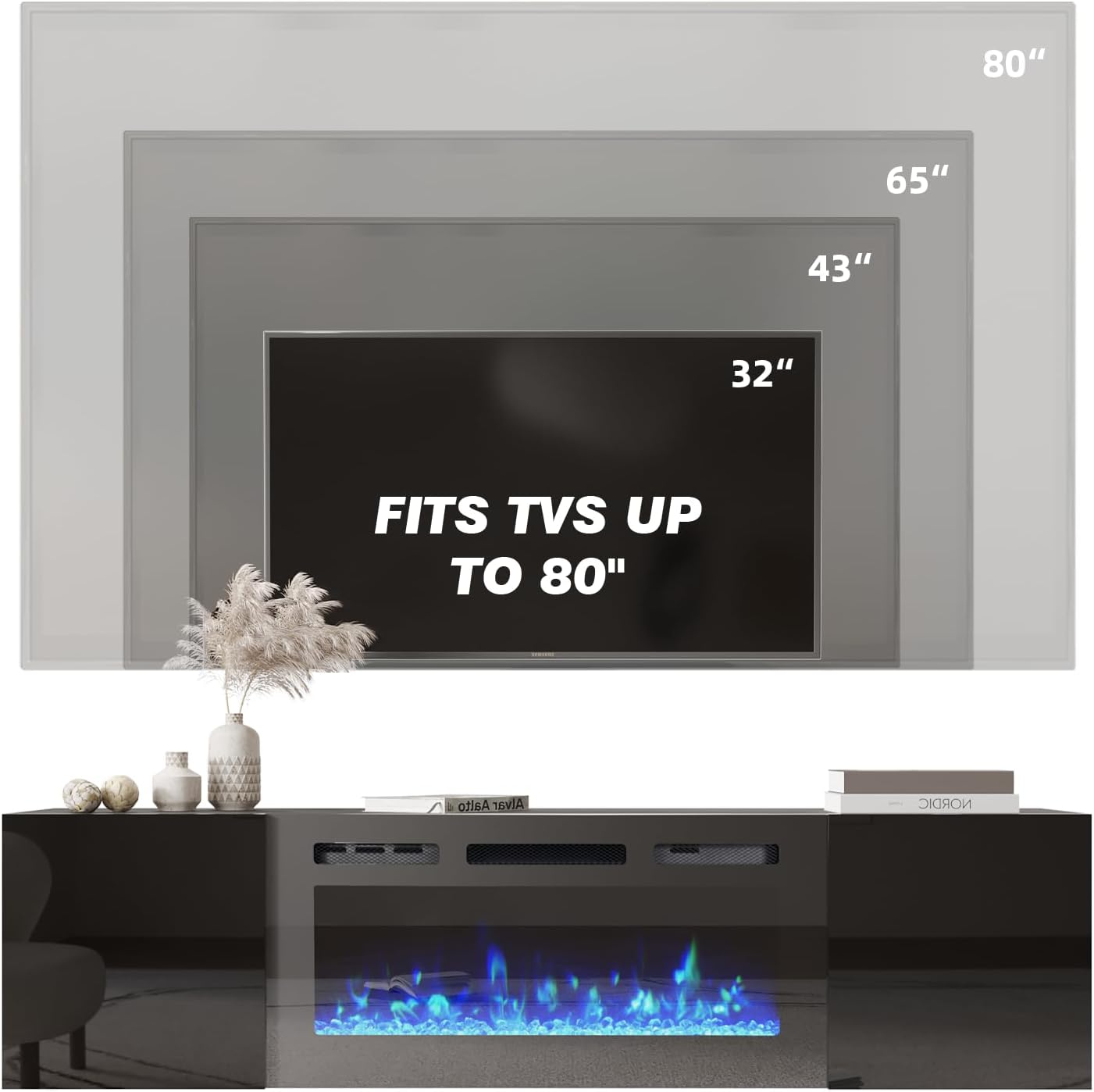 8 reviews for EROMMY 70” Wall Mounted Floating TV Stand with 36” Electric Fireplace, High Gloss Entertainment Center with Storage, 12 Flame Color Heater for TVs Up to 80”, All Black TV Console for Living Room