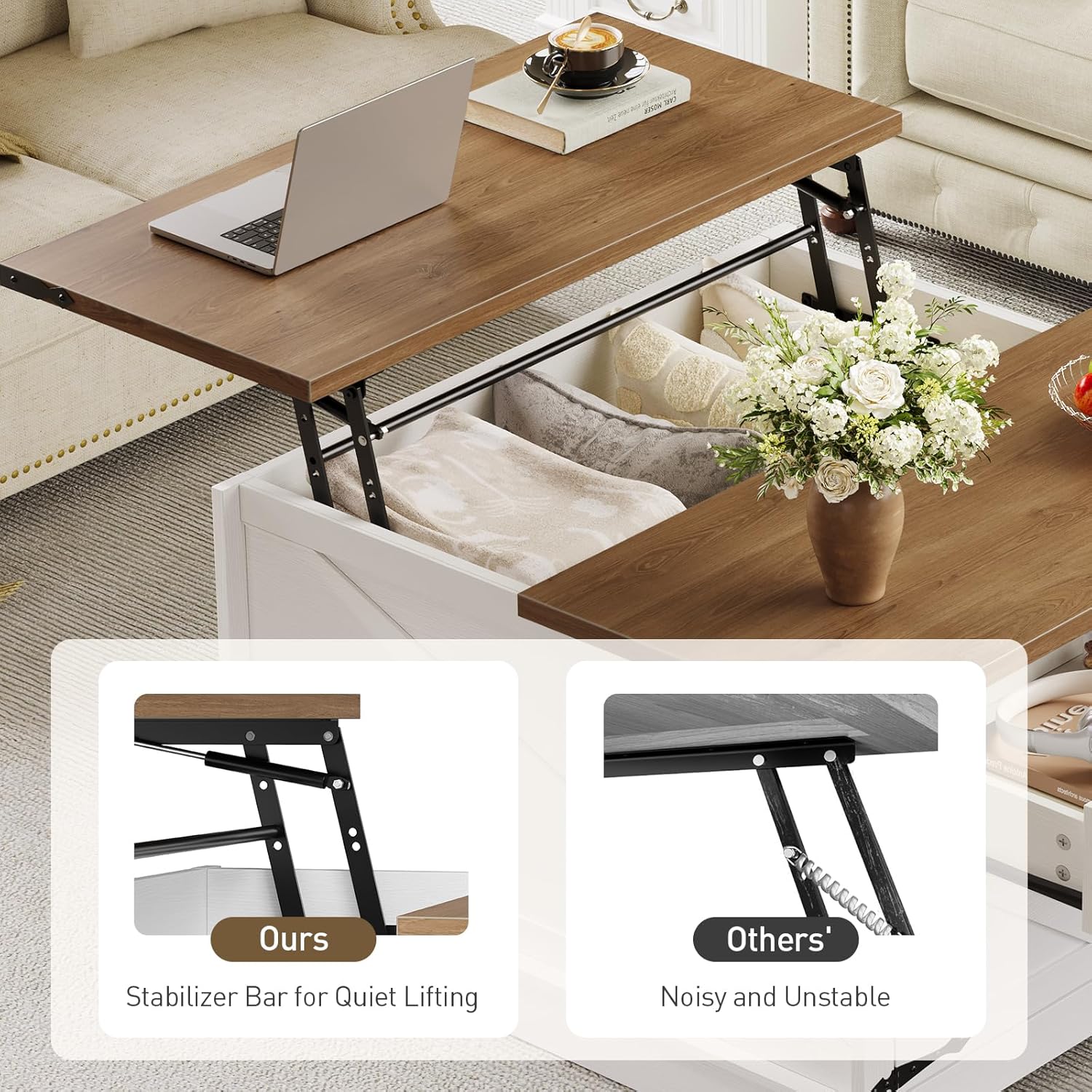 7 reviews for Farmhouse Lift Top Coffee Table with Storage, Square Wooden Center Table with Drawers for Living Room, Rustic Coffee Table with Hidden Compartment, White and Walnut