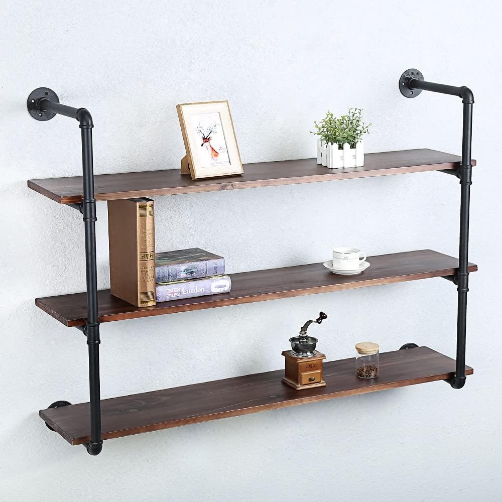 8 reviews for Industrial Pipe Shelves with Wood Planks,Bar Shelving Wall Mounted Hanging Book Shelf,Rustic Iron Floating Shelves for Wall(3 Tier 48in)