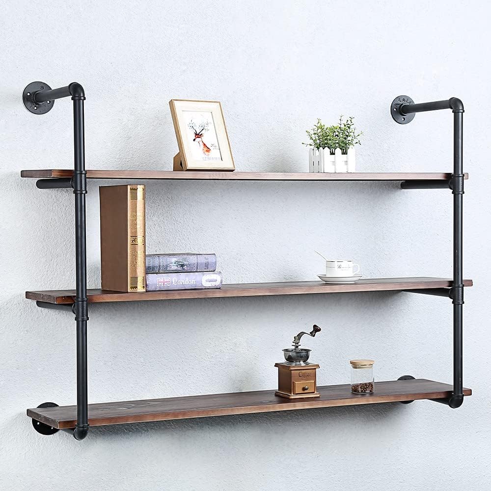 Industrial Pipe Shelves with Wood Planks,Bar Shelving Wall Mounted Hanging Book Shelf,Rustic Iron Floating Shelves for Wall(3 Tier 48in)