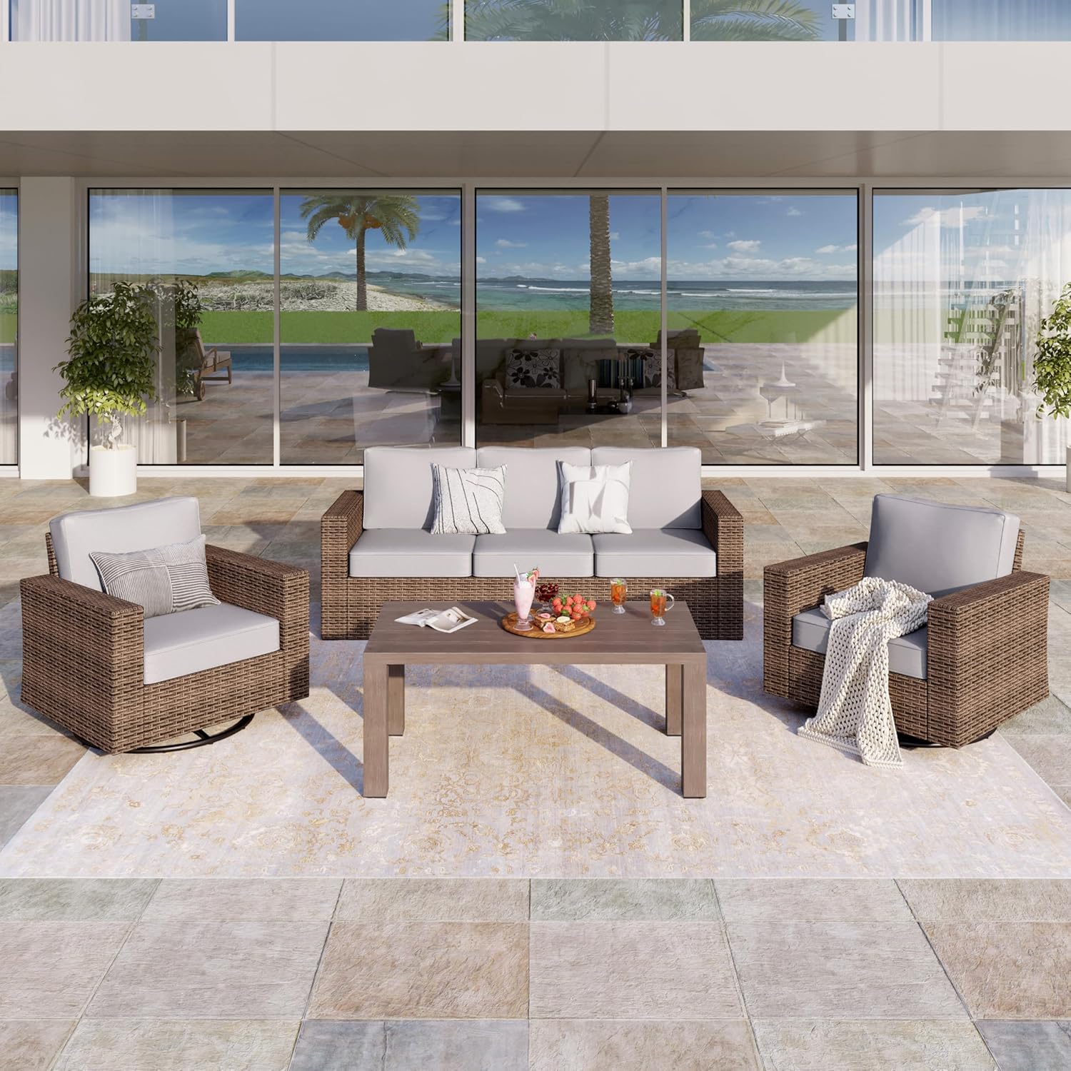【Widened Armrest for Extra Comfort】The arms of the sofa and swivel chairs have been widened to 4.92″ width, offering exceptional arm support and relaxation. The sturdy, generously sized armrests also double as a convenient surface for drinks, books, or small items.