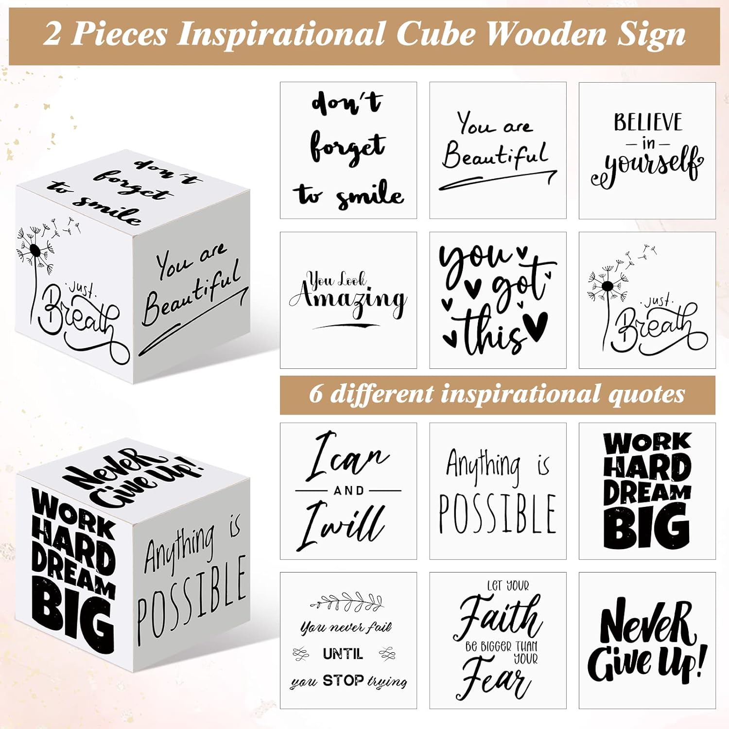Mini Size: the desk blocks with sayings measure approx. 3.35 x 3.35 x 3.35 inches/ 8.5 x 8.5 x 8.5 cm, mini and compact, in a convenient and delicate cube shape that can be placed firmly on your table to serve as elegant decorations, and they won’t occupy much space on the countertop