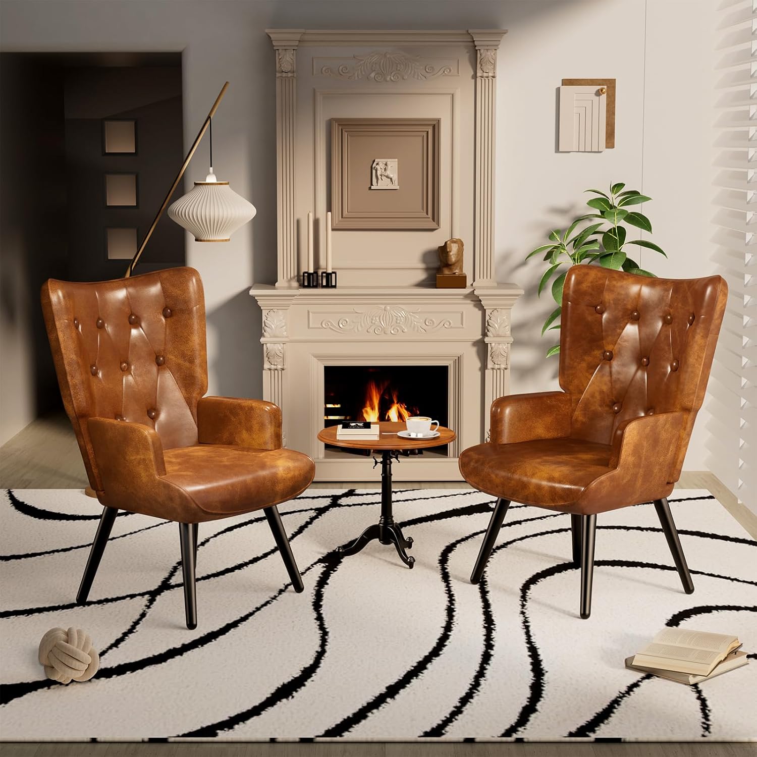 4 reviews for TLSUNNY PU Brown Accent Chair, Comfy Upholstered Armchair with Metal Legs, High Backrest Living Room Chair, Wingback Chair Mid Century Modern for Living Room/Vanity/Bedroom (2 pcs)