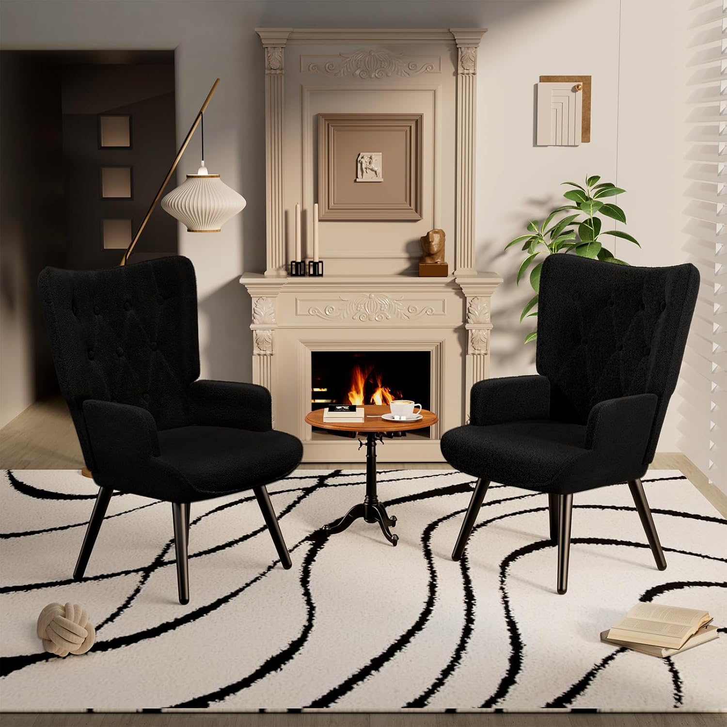 3 reviews for TLSUNNY Teddy Fabric Black Accent Chair, Comfy Upholstered Armchair with Metal Legs, High Backrest Living Room Chair, Wingback Chair Mid Century Modern for Living Room/Vanity/Bedroom (1 pc)