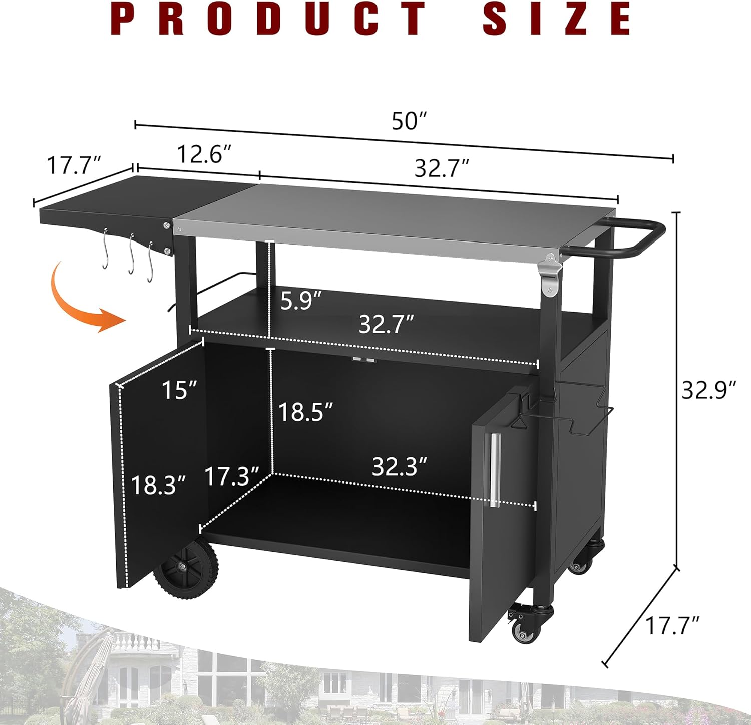 8 reviews for Vongrasig Grill Cart with Storage, Outdoor Bar Cart Rolling BBQ Movable Pizza Oven Table Stand with Foldable Stainless Steel Top & Storage Cabinet, Black