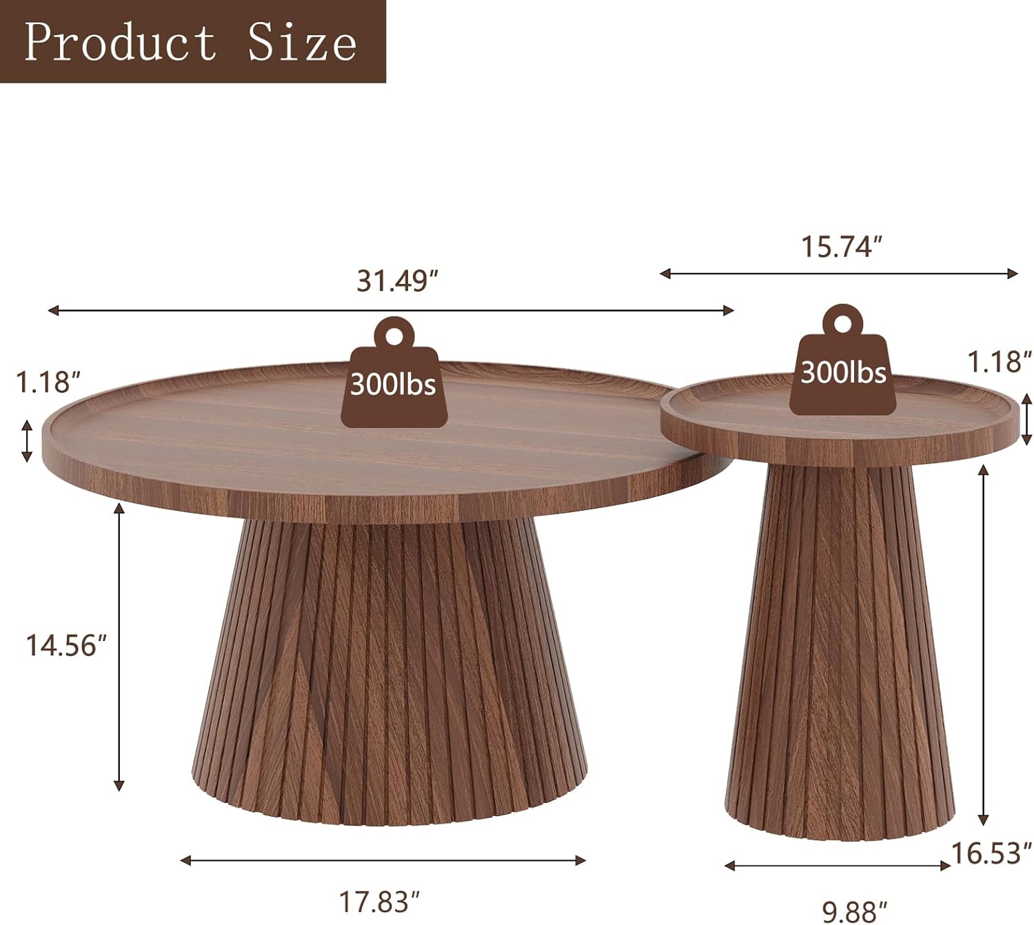Crafted with care, the Round Coffee Table and End Table Set showcases the natural beauty of walnut wood grain. The raised edges provide practical functionality, preventing items from slipping off while enhancing the visual appeal of each table. Scratch-resistant foot pins ensure stability and protect your floors from scratches, making this set both practical and stylish.