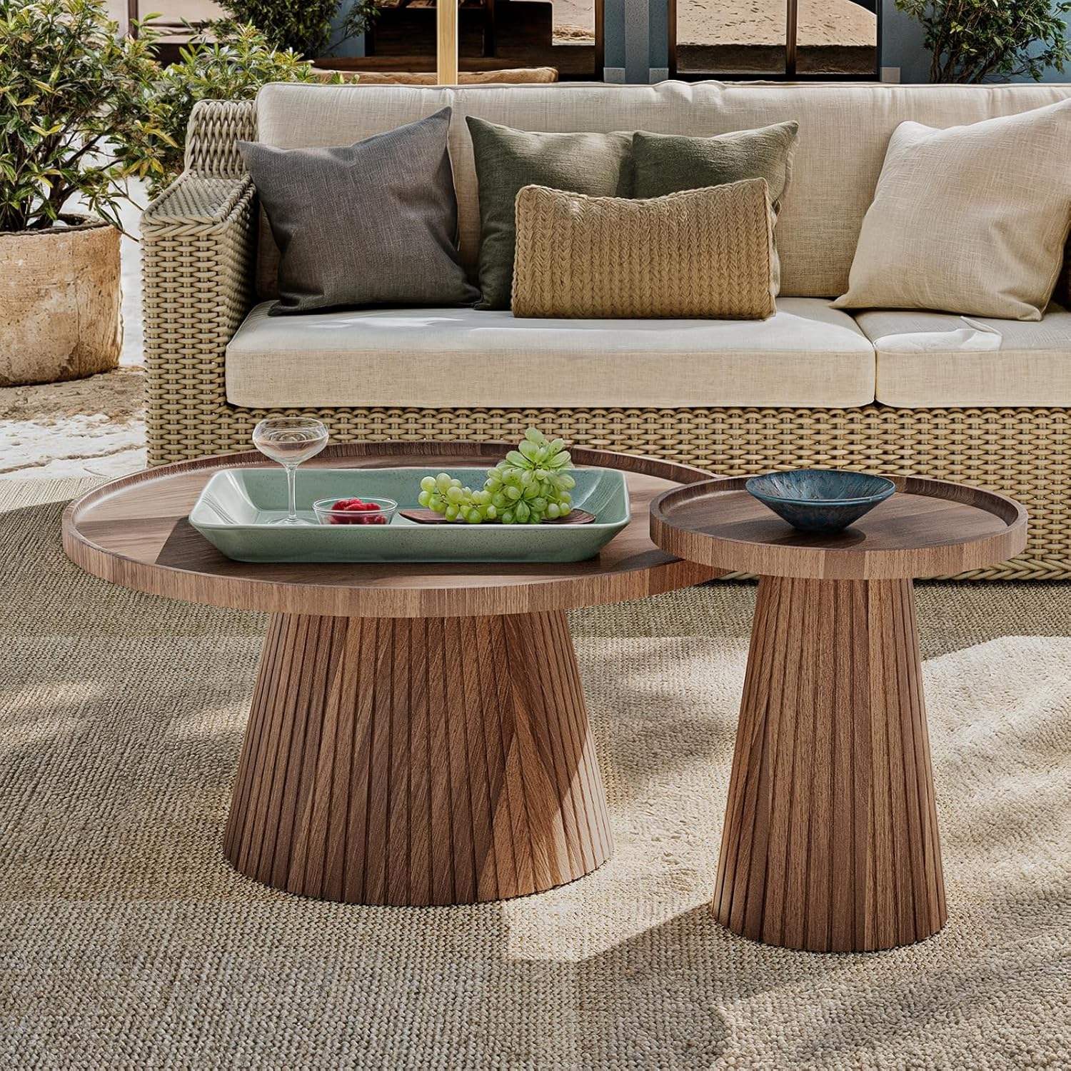 Add a touch of timeless elegance and versatility to your living space with the WIN2WIN Mid Century Modern Nesting Coffee Table Set. This stunning set of 2 features a warm walnut finish with natural wood grain texture, designed to seamlessly complement any living room, apartment, or office. The fluted edge detailing embodies the clean lines and classic charm of mid-century modern design, making it a stylish and functional addition to your home.