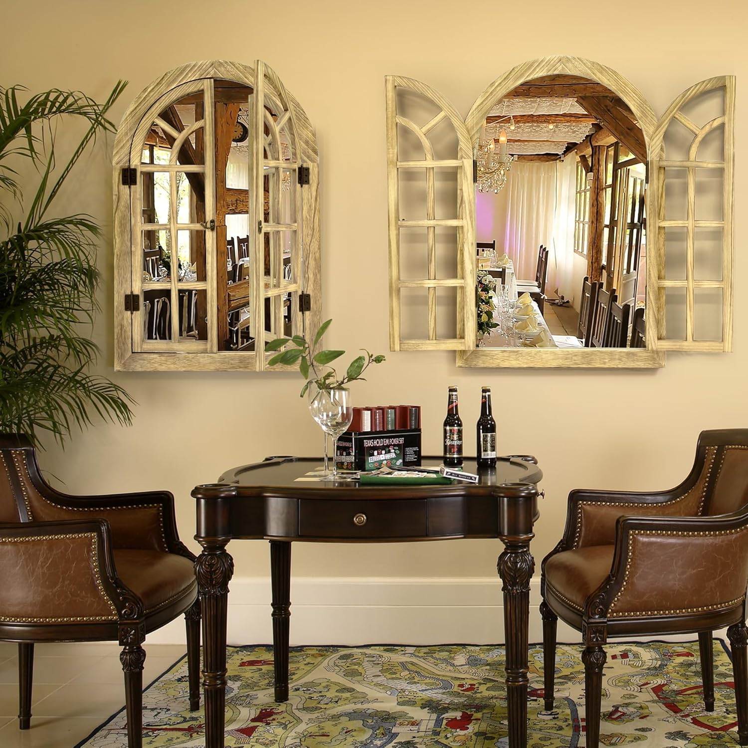 PERFECT DECORATIVE GIFT: These charming antique window mirrors can not only be used for decoration but also enhance the charm of the interior space, they can also be perfectly matched with other wall decorations in the living room, bedroom, entrance, porch, etc. Mirror mounted on the wall adds a gothic cathedral style to the room.