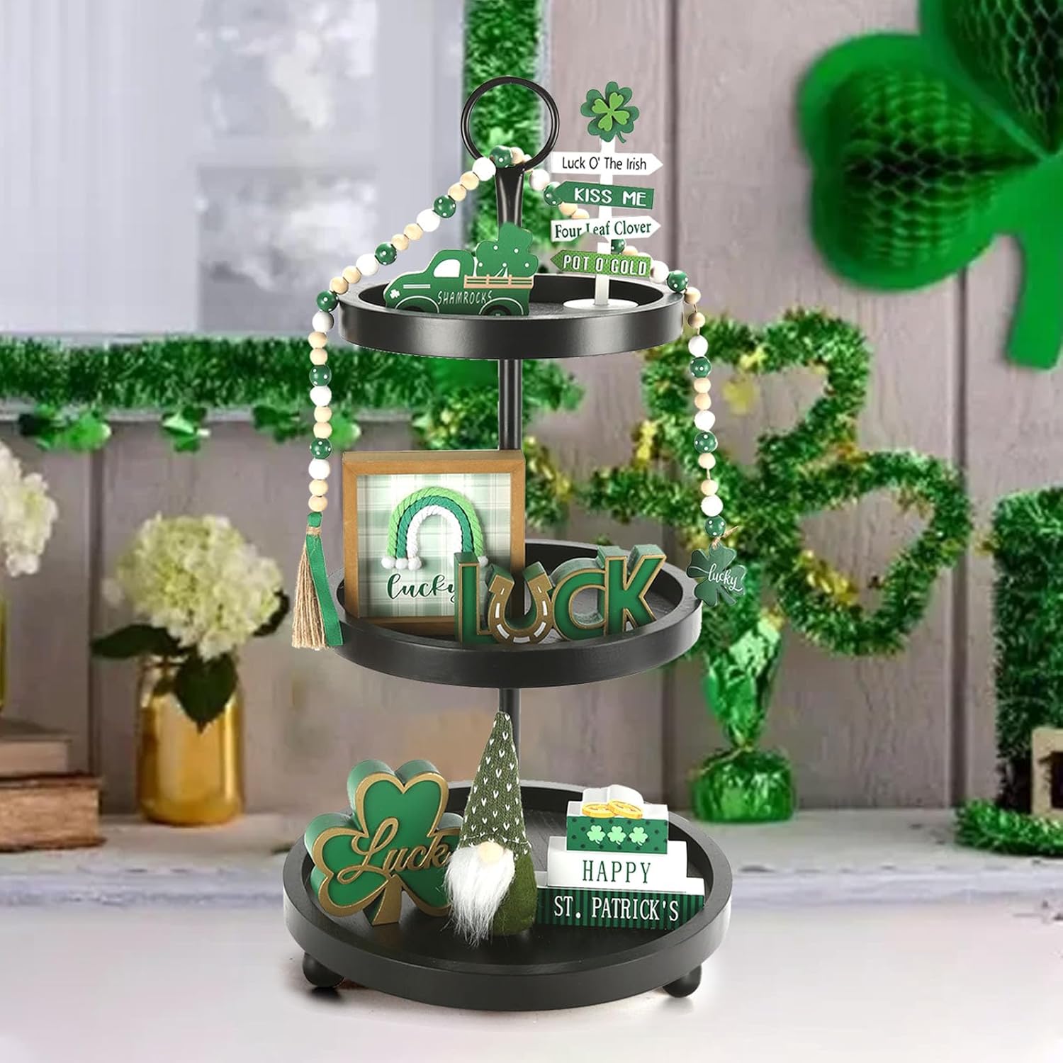 Wooden 3 Tiered Tray Stand, Farmhouse Round Black 3 tier Decorative Tray for Home Kitchen Table Decor, Serving Tray for Coffee Bar Party Weddding Holiday Decorations Fruits and Cupcake Display